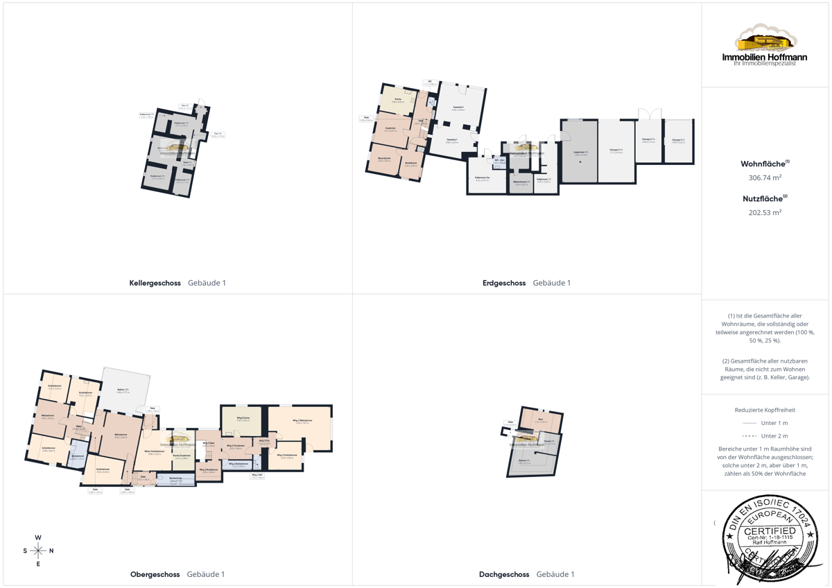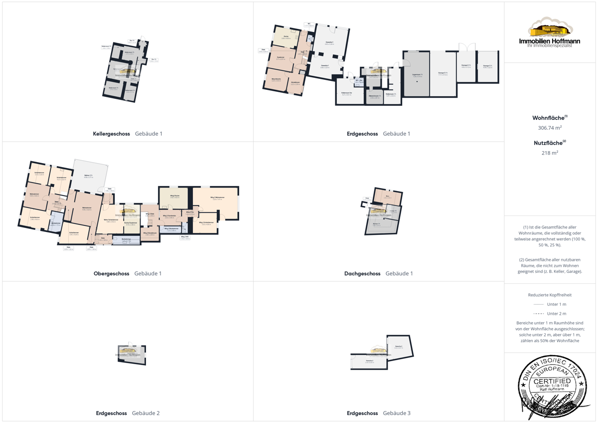 Insgesamt stehen ca. 307 m² Wohnfläche und ca. 203 m² Nutzfläche zur Verfügung. Die Wohnfläche verteilt sich aktuell auf zwei Wohnungen mit ca. 210 m² und ca. 97 m² Wohnfläche. Ergänzt wird das Objekt durch zwei Gewerbeeinheiten mit ca. 60 m² und ca. 36 m², die sich ideal für Büro, Praxis, Atelier, Lager oder Dienstleistungen eignen.